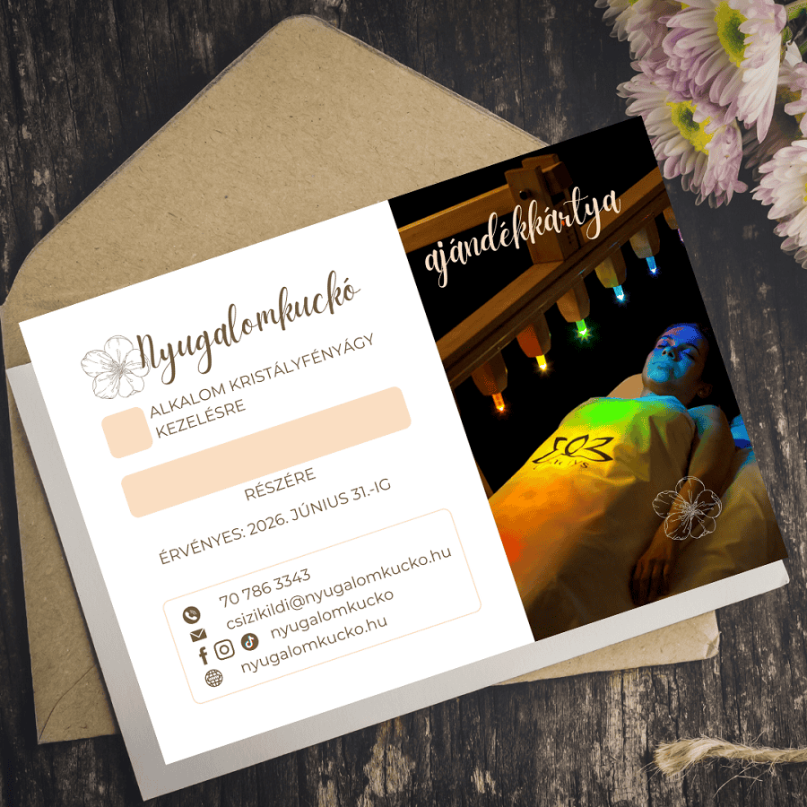 Ez a kezelés olyan érzés, mintha a tested-lelked egy finom rezgésű fényfürdőben pihenne. A kristályok frekvenciái összehangolódnak a saját energiáiddal, segítve a letapadt minták feloldását és a belső harmónia helyreállását.